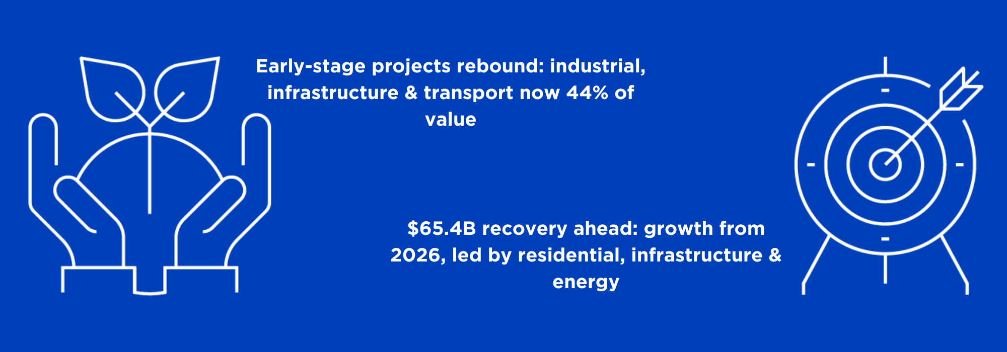 New Zealand’s construction pipeline is showing early signs of stabilisation for 2026, following a prolonged period of cost escalation, funding pressure and delivery risk. According to the Construction Outlook 2026 – New Zealand, early-stage project values began to lift again in late 2025, with industrial, infrastructure and transport projects accounting for 44% of total early-stage value, signalling a gradual but uneven recovery across the sector.